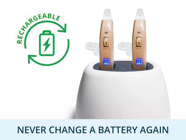 This advanced hearing aid combines the simplicity of rechargeable batteries with the superior sound quality of dual microphones.